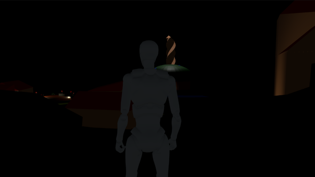 Die Oberwelt diente dazu den Story-Aspekt und das Tutorial abzudecken. Der Spieler konnte gefahrlos lernen, wie er sich bewegt und wie er angreifen kann. Dies wurde über einen Schießstand und beispielsweise Säulen umgesetzt, über welche der Spieler springen musste. Der Turm dient als Orientierungspunkt für den Spieler, sodass er sein eigentliches Ziel nicht aus den Augen verliert. Die theoretisch im Dorf verteilten NPCs geben allerdings auch Tipps und Hinweise, welche bei Bedarf genutzt werden können.