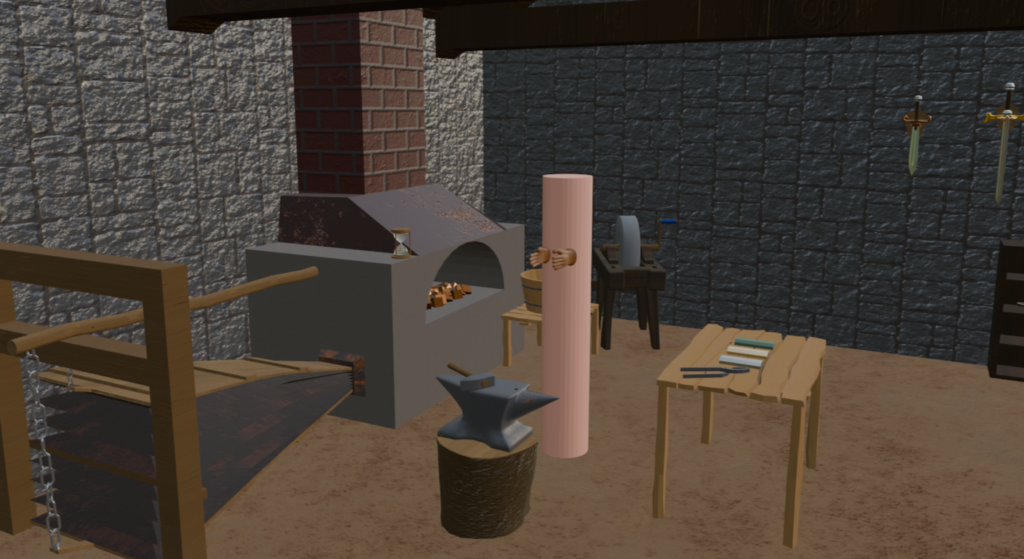 Bei „Blacksmithery: Art of the Sword“ handelt es sich um eine 3D-Umgebung, welche als VR-Anwendung konzipiert wurde. Der Nutzen dieses Projektes besteht, bei einer Umsetzung in der passenden Engine, darin, Menschen den Ablauf eines mittelalterlichen Schwertes von Grund auf in einer zeitlich komprimierten Form beizubringen. So ist sowohl die Verwendung innerhalb von Ausbildungsverhältnissen als auch im Rahmen mittelalterlicher Veranstaltungen möglich. Das Setting befindet sich im europäischen Mittelater, doch es wurden zur Auflockerung Fantasy – Elemente wie ein Ork und die verschiedenen Farben des Stahls eingebaut.